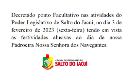 Ponto facultativo no dia 03 de fevereiro!