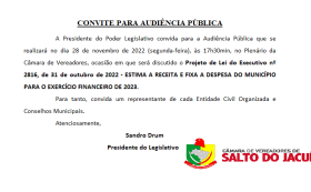Eleita a Mesa Diretora 2023: Presidente: Vereador Altenir Rodrigues da Silva, Vice-Presidente: Vereador Sandro Drum, 1° Secretária: Vereadora Orquelita Salgado da Costa e 2° Secretária: Vereadora Jane Elizete Ferreira Martins da Silva.