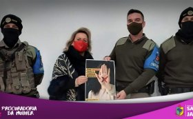 Vereadora Cleres, Procuradora da Procuradoria Especial da Mulher também divulga a Lei Municipal Código Sinal Vermelho junto à Brigada Militar!