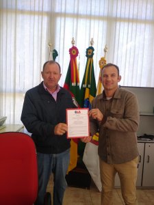 Na tarde de hoje, 20 de maio, o Presidente do Legislativo de Salto do Jacuí, Sandro Drum, recebeu em seu gabinete o Presidente da Subseção da OAB de Salto do Jacuí, Jacuizinho, Tunas e Estrela Velha, Carlos Roberto Ravanello, que na oportunidade entregou ao Presidente do Legislativo o Convite para a Solenidade de Posse da Diretoria 2022/2024.