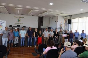 Ocorreu, na tarde desta terça-feira (13/12), o lançamento oficial do Projeto de Segurança para o Meio Rural denominado Propriedade Segura. Na ocasião os representantes da EMATER, Fabiano de Vargas Gregório e Leandro Carvalho explanaram sobre o projeto e sua importância para o meio rural do município. A Assessora Jurídica da Câmara Municipal, Vanusa Bertolo, representando o Presidente do Legislativo, Sandro Drum, entregou ao 2º Sargento Marcelo da Luz Machado, um aparelho smartphone que foi adquirido através da devolução de recursos da Câmara de Vereadores feita pelo Presidente Sandro ao Executivo. O aparelho será utilizado pela Brigada Militar e será de grande ajuda no Projeto Propriedade Segura, assim como confirmou o Sargento em sua fala. O Prefeito Municipal, Ronaldo Moraes, salientou que a Administração Municipal vai custear as 100 primeiras placas para quem desejar aderir ao projeto.