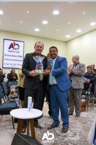 Presidente Sandro Drum participa do culto em comemoração aos 70 anos da Igreja Assembleia de Deus em Salto do Jacuí! Na oportunidade o presidente fez a entrega de uma placa como forma de homenagem!