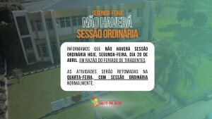 Segunda-feira, dia 20 de abril, não haverá Sessão Ordinária Segunda-feira, dia 20 de abril, não haverá Sessão Ordinária